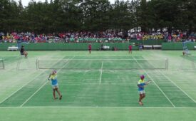 NEWS ソフトテニスで両手打ち(もも、のどか)